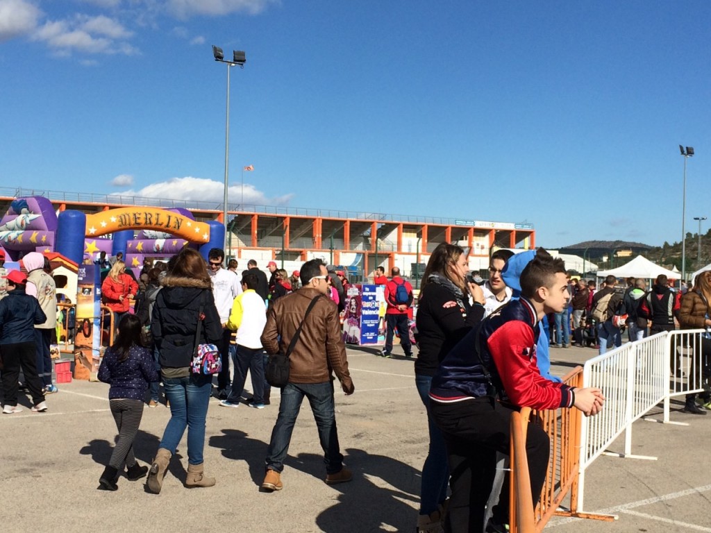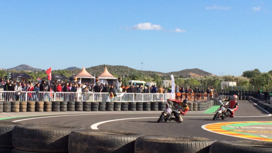 Pilotos rodando con sus motos de Súper Motard y Mini Motard, juegos para los niños con castillos hinchables, coches y motos eléctricos, drones y vehículos de radio control, servicio de bar, música en directo y todo ello con el telón de fondo del FIM CEV Repsol para el que entregamos invitaciones a todo el que tuvo interés en asistir a las carreras del domingo.