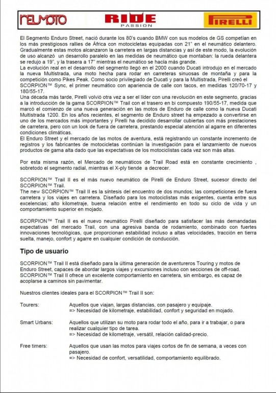 PIRELLI SCORPION TRAIL II CARACTERISTICAS DEL PRODUCTO